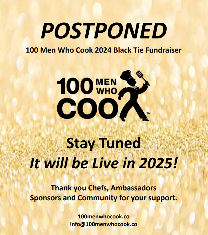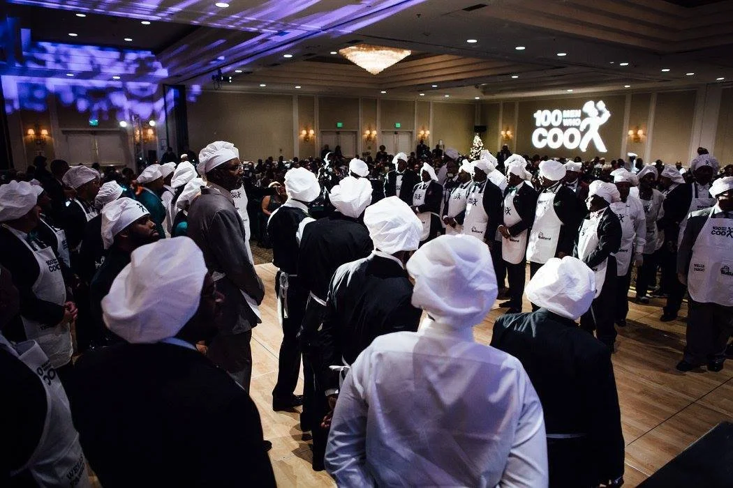 The 100 Men Who Cook, Inc. Black Tie Fundraiser Experience Our Party With A Purpose Join us in our goal to raise $100 K for 100 Men Who Cook, Inc.! Click Here To Donate For A Purpose